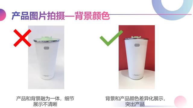我们用下面两张对比图来说明背景色的重要性。显然,右边的产品比左边的产品更突出。设置背景色是为了衬托产品,所以最好在保持配色舒适的基础上,尽量拉开产品背景色的色差,让产品展示更清晰。