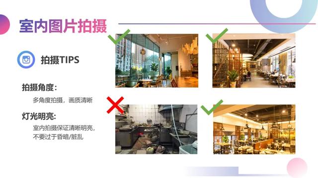 还有一类照片拍摄需求是侧重于店内或房间内陈设、氛围的室内展示,所以这类拍摄必须有多角度的最佳拍摄输出方案,并保证清晰的画质。还有很重要的一点是,最好注意室内布局和灯光,利用好灯光可以突出室内氛围,提升调性。