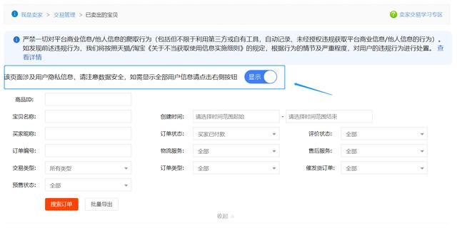 根据国家相关法律法规和平台数据安全规范的要求,卖家中心后台涉及消费者敏感信息的字段将被默认隐藏。