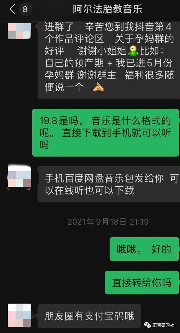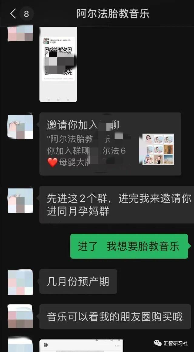 马宝加信的时候,先让你加淘宝社区,每天在薅羊毛卖母婴产品(以后我会单独写文章),然后把你拉进当月孕妈群。这里还没有实现,而且一直是免费的,但是如果想要全套的胎教音乐,需要付19.8。或者购买他们团里的任何商品。
