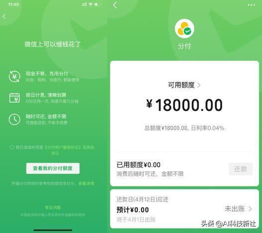 微信方面表示,微信支付是一种全新的消费贷款方式,为微信用户提供了一种全新的支付方式,省钱又方便,不用担心微信没钱支付的尴尬。像支付宝的花呗功能,微信支付让用户想用就用,想借就借,想还就还,非常方便。