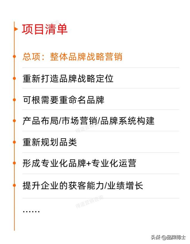 我们的项目组(成员)通过拉单、剥茧的方式,从品牌战略、市场营销、产品/品类策略等多方面进行了全面细致的分析、提炼和协同推进,最终逐一解决了问题。