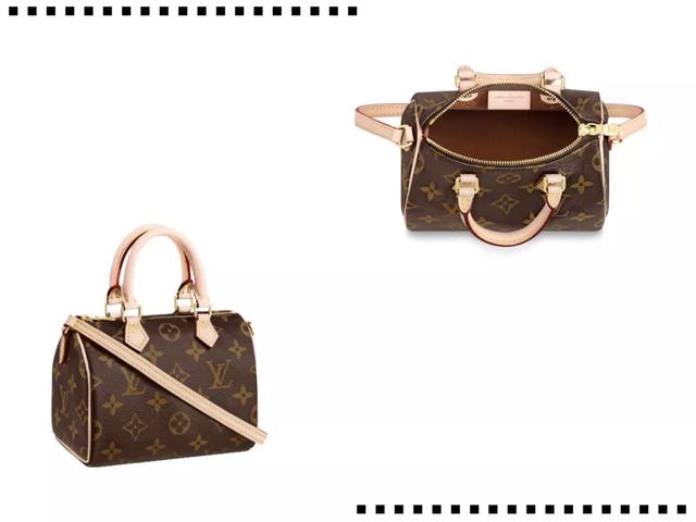 赫本的祝福让Speedy火了,Speedy经典实用的设计也足以让它火到现在。Nano speedy作为Speedy家族中的“小可爱”,可以说体积小,容量大,是LV mini车型中最适合的。