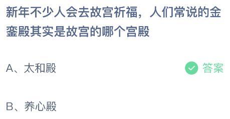 故宫的哪个宫殿实际上是金殿?这是蚂蚁庄园2022年1月7日今日庄园小课堂的提问。下面详细介绍一下2022年1月7日今日蚂蚁庄园课堂的鸡饲料答案。