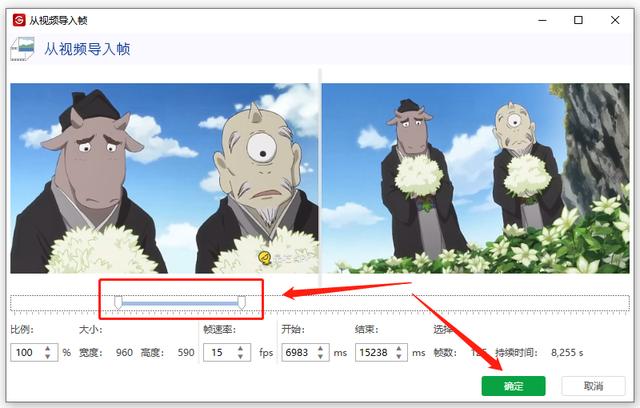 第二步,边肖这里,以视频捕捉为例。如图所示,将视频导入软件后,选择需要的剪辑,拖动两个端点,点击确定。