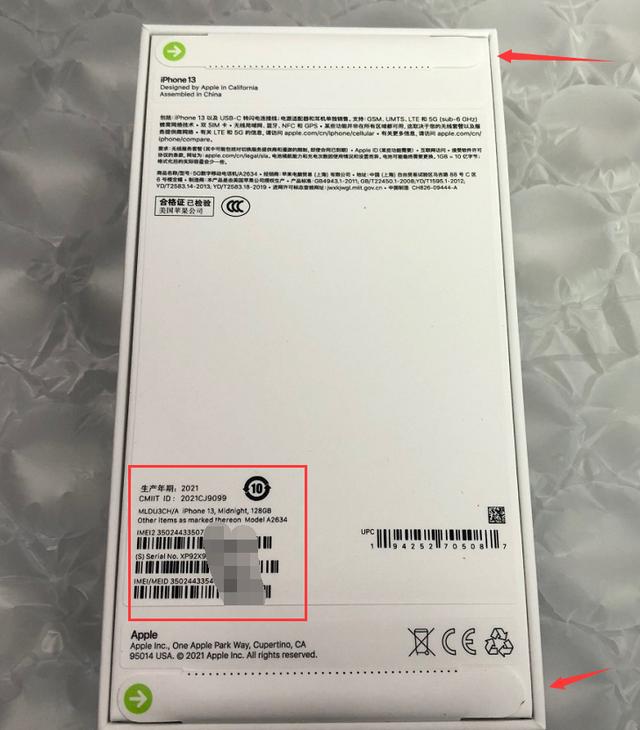 看封条是否启封,封条宽度是否一致,有无贴歪的迹象。看标签iPhone的基本信息。比如这个iPhone13是午夜色,国行,128GB,是否和你买iPhone的信息一致。如果它们匹配,找到下面的IMEI代码或序列号。用序列号或IMEI码查询机器的整机报告,看激活状态。如果没有激活,表示全新,如果激活,表示后封机。