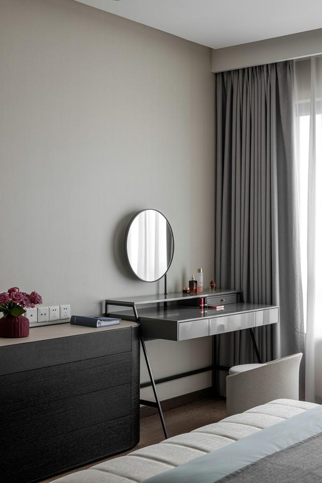 无落地的悬挂空设计可以营造出轻盈的通透效果和视觉延伸,对于卧室梳妆台也是不错的选择: