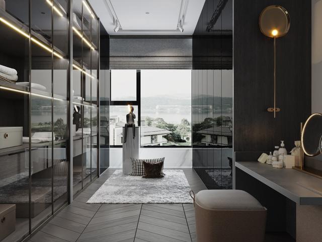 如果有衣帽间的话,梳妆台和衣帽间的组合也算是绝配了。化完妆,可以直接在这里选择符合要求的衣服,动线最短,老化时间最高。