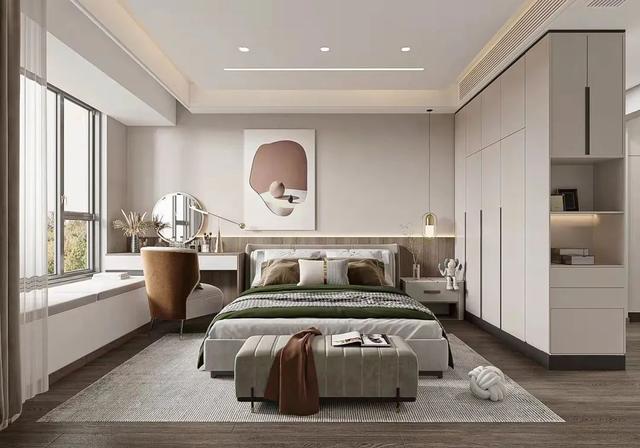 梳妆台和衣柜一体化设计是近年来比较流行的方式,可以有效利用空房间,同时也不会过多占用其他区域,非常适合小户型。而且整体设计感强,也会增加空之间的统一性。
