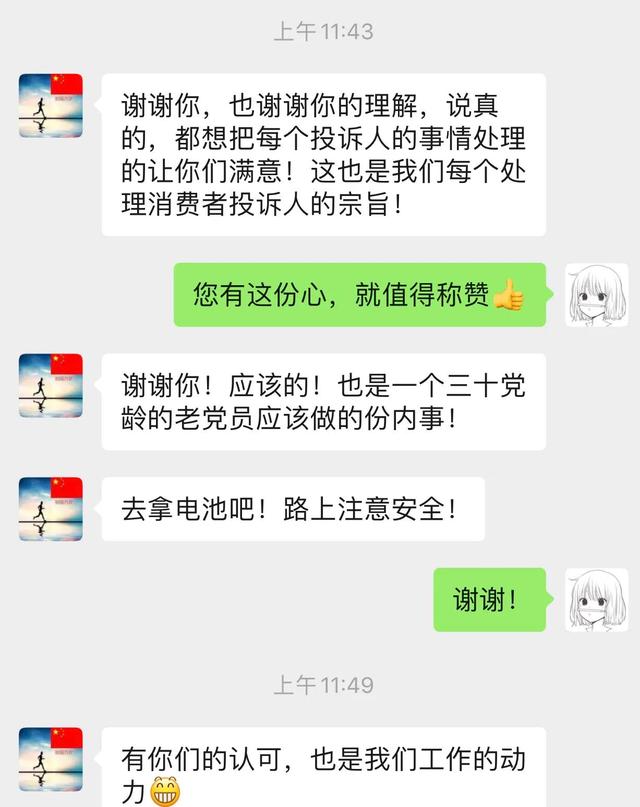 今年3月,我在拼多多平台的一家店铺买了一辆电动助力车。9月份的时候发现电池充不上电了。机械师说这只是一个翻新的电池。当我看到电池时,它已经很旧了。我知道这个网购被骗了,就联系了商家。商家同意换电池,运费却要我出。我辩称责任不在我,不同意运费。联系拼多多平台投诉,回复投诉时间已过。我觉得很失望,就抱着试试看的心态,拨打了江苏无锡(商家所在地)的12315和山东泰州(电动车生产厂家所在地)的12315。没想到,两地的12315职能部门在了解情况后很快给了我回复,并说明了如何处理此事。无锡12315同志还加了我的微信,让我把图片发给他投诉,事情很快就解决了。商家如约给我发了一个新电池,还退了我运费。事后,无锡12315的同志也对事情的处理结果进行了回访。