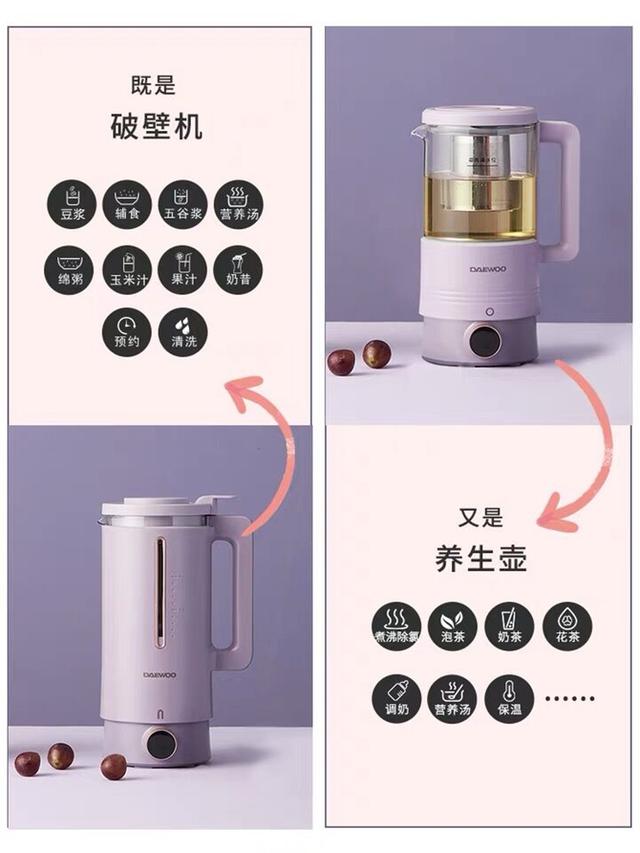 这款破壁机是双杯的,有两个杯子:破壁机和养生杯。有两种颜色,一种是流光紫,一种是时尚白。只要关注美食博主,随时可以刷。很多美食博主都在用!它的颜值真的很高,无论是白色还是紫色,看起来都很高级。