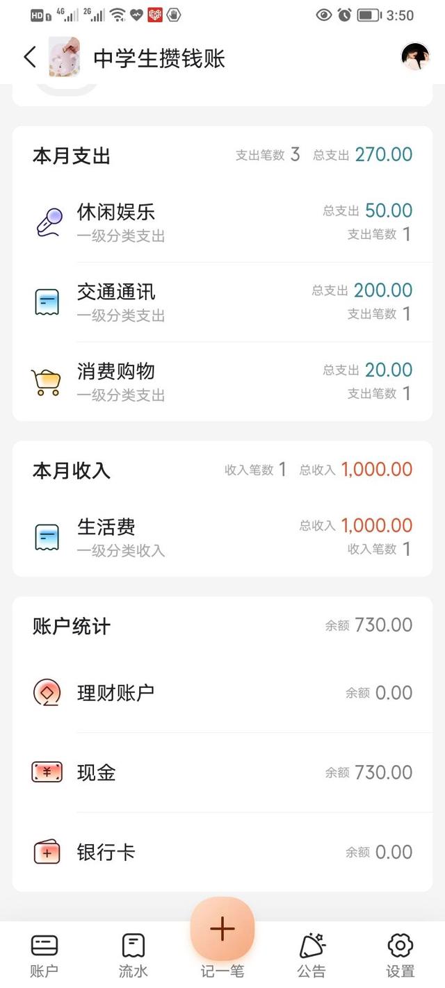 中学生可以在灵云中使用学生储蓄的账本,通过账本记录自己的消费习惯。通过记账消费支出,定制分类图表,方便观察每笔支出的比例,让孩子学会通过比例比例分散消费,养成不必要消费和延迟消费的习惯。
