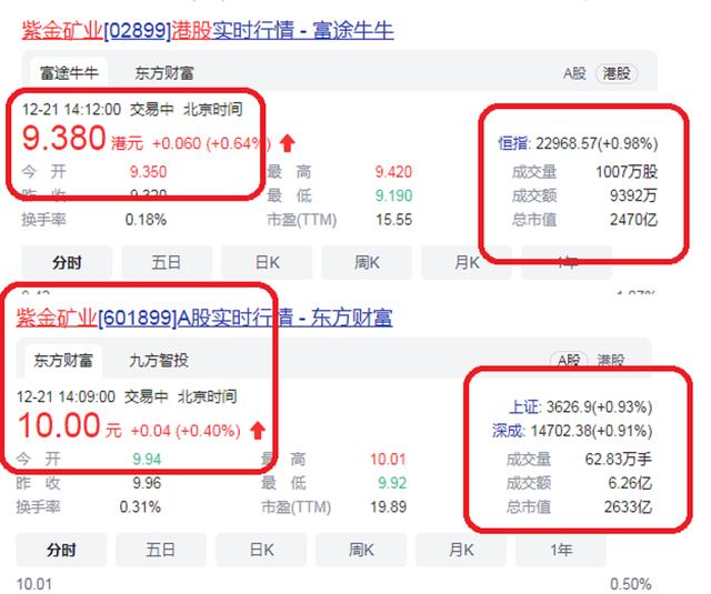 目前紫金矿业港股市值2470亿港元(约合人民币2014.64亿元),a股市值约2633亿元。根据紫金矿业官网介绍,公司矿产金、铜、锌、银产量位居全国前三,在14个省(区)和12个海外国家有重要矿业投资项目。截至2020年底,公司拥有黄金2334吨,铜6206万吨,锌(铅)1186万吨。