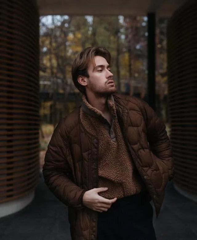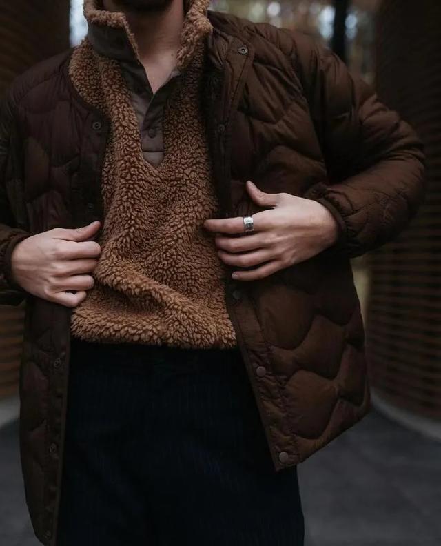 相比深绿色,棕色更像是复古和轻熟的代名词,穿上之后更多的是一种轻浮和精致。与传统的机车夹克和空军用夹克相比,内搭夹克被赋予了别样的美感,同色系的穿着更是增添了不少复古感。
