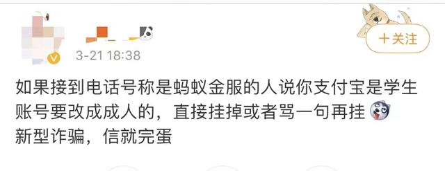 支付宝通过了身份证实名认证,不存在从‘学生账户’到‘成人账户’的变化。我们这里没听说过这种说法,对方应该是骗子。