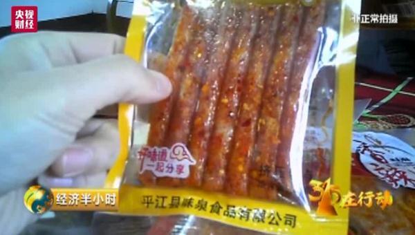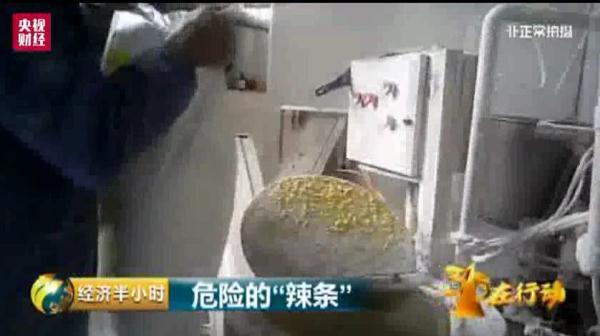 3·15晚会上生产辣条的公司一被曝光,《经济半小时》记者立即分成两组,配合当地市场监督管理的执法人员立即赶往平江县李俊食品公司。跟随执法人员进厂后,记者首先来到了该企业的膨化车间。