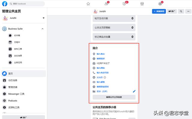 (1)创建一个主页。新开通的个人号还处于不稳定状态,贸然创建主页很容易引起官方的注意。最坏的情况下,不仅无法创建主页,还可能导致个人号码被屏蔽。