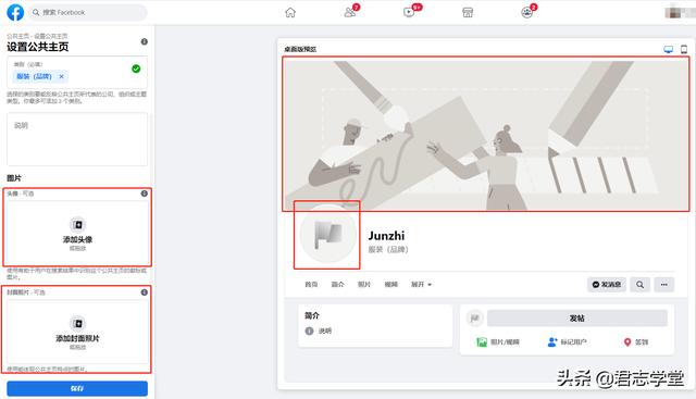 上传首页背景图和头像。建议将背景图和头像与网站关联起来。第一,可以增强首页和网站的相关性,降低首页被屏蔽的风险。二、关联性强有利于加深客户对主页或网站的记忆。