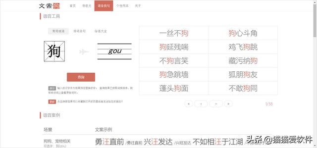 提供单词,成语,谐音文案,很有意思。
