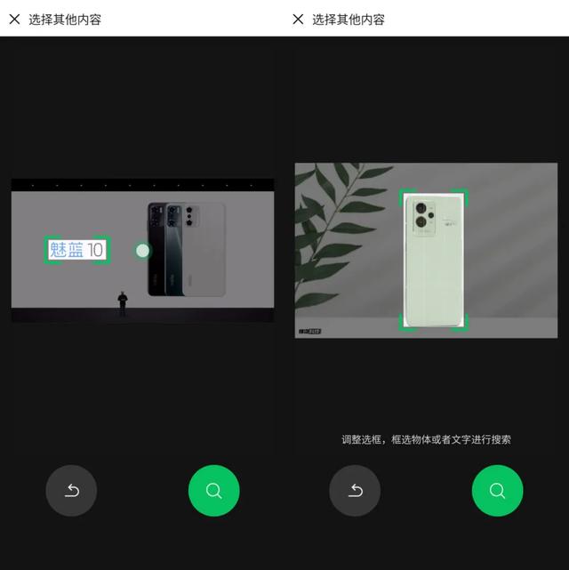 搜索支持选择图片的一部分,或者选择图片中的文字进行搜索。