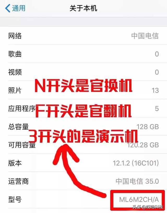 一般在“通用”-“关于本机”中,获取手机的型号。如果首字母是M,就是原装零售新机;如果首字母是N,就是官方更换机。