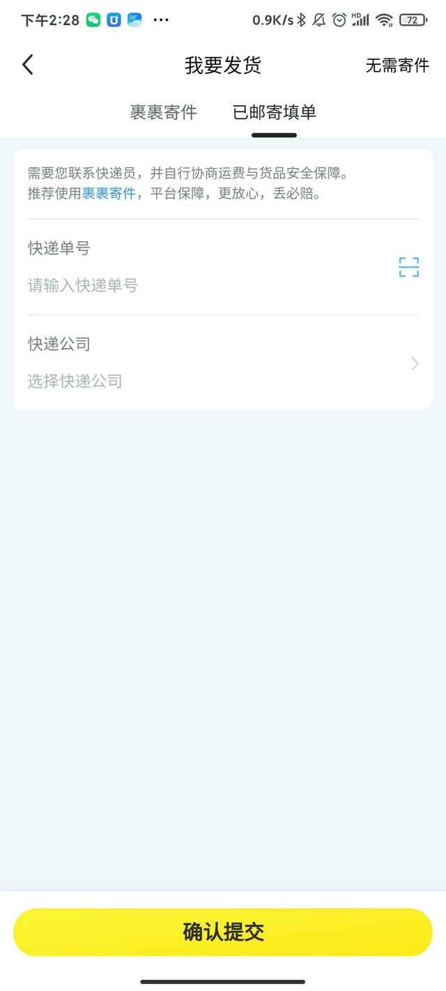 闲鱼内置的裹裹寄件