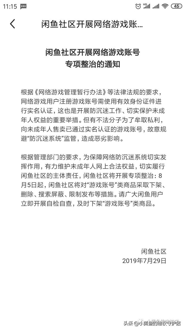 欢迎给予您的认可和关注。下期我们就来说说闲鱼上哪些产品一定要慎重购买!.更多资讯欢迎关注微信官方账号:小黄鱼的守护店。
