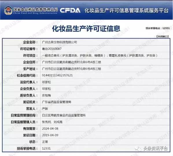 根据法布里的官方资料,该公司的产品是从大牌原料进口的“高科技”,在国内生产。经销商小李透露,公司生产主要靠两家公司:广州古泉生物科技有限公司和洋丰(上海)生物科技有限公司