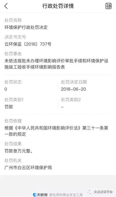 天眼查资料显示,该公司去年因违反相关环保法律受到行政处罚。