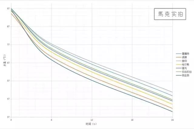 天气转冷,大家还是喝热水,所以这次只测试保温性能。我在每个保温杯里装满接近100℃的开水,然后密封静置,6小时和24小时后测量水温。