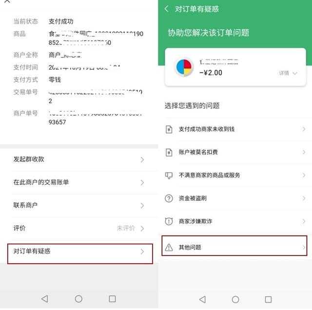 在交易账单详情页,从底部找到“对订单有疑问”的条目,进入后点击“其他问题”,选择“投诉商家”,然后详细描述被骗的过程并提交。