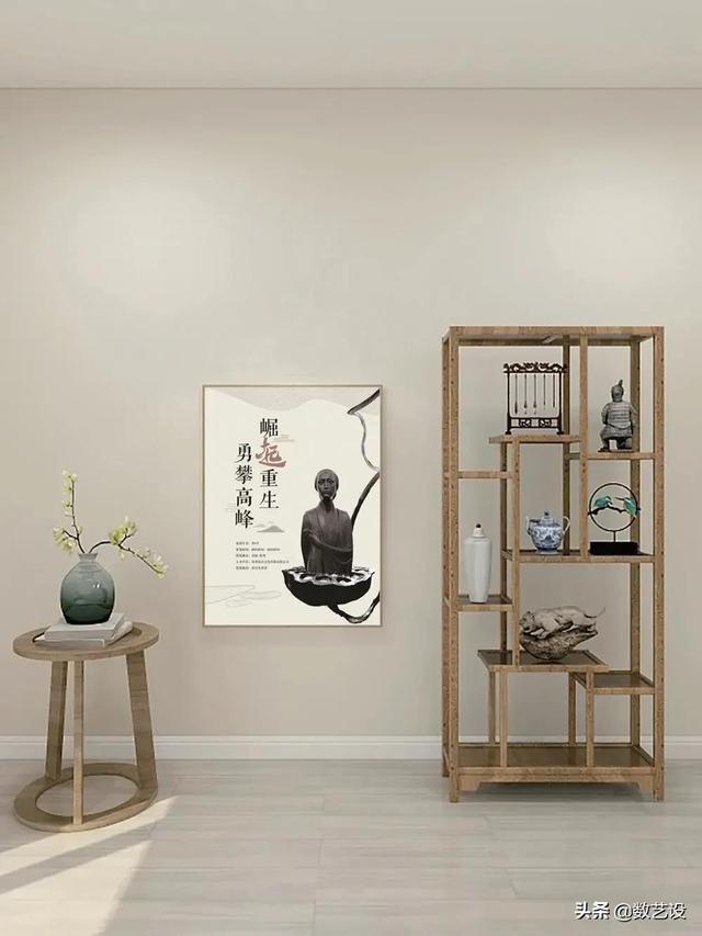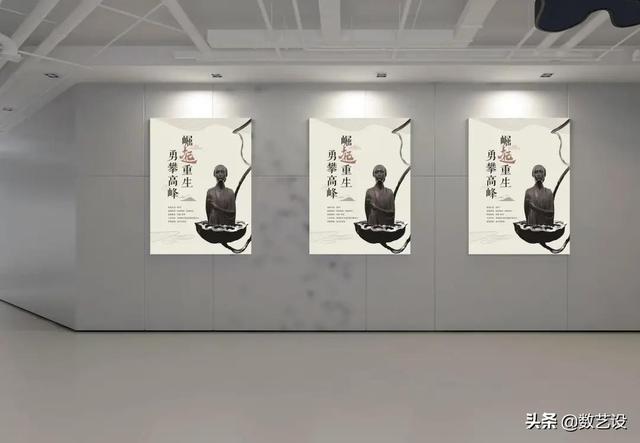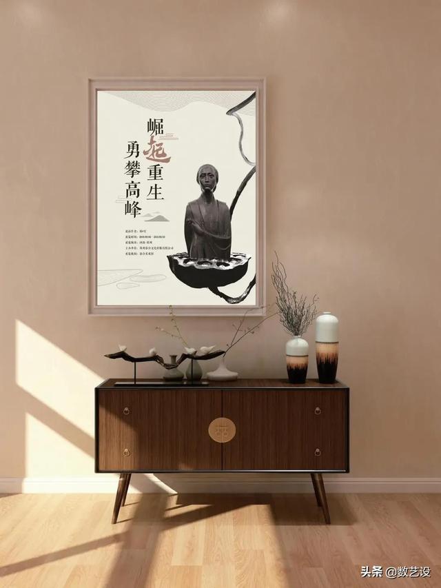 修改后的文字和雕塑采用对角线布局,分别布置在版面左上角和右下角的黄金分割处,建立视觉平衡,相互呼应。