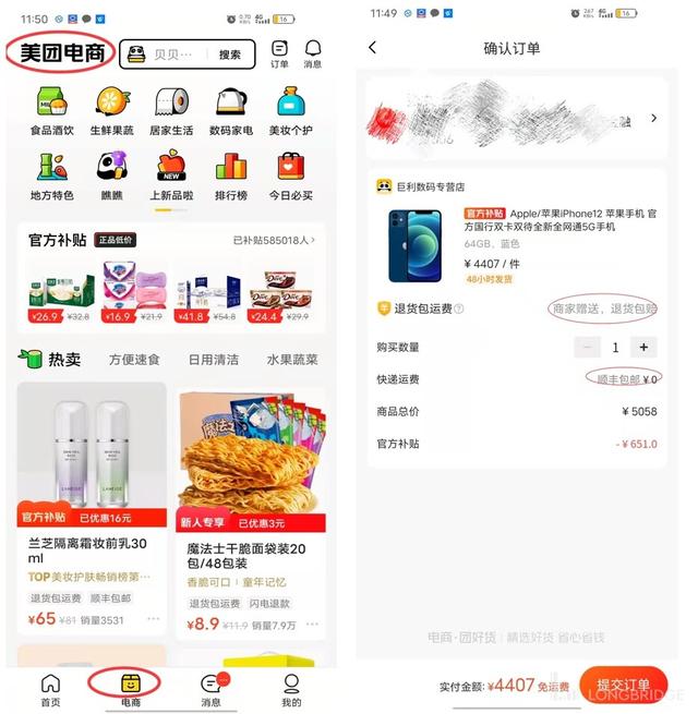 海豚君测试了一下,商家的发货&选择物流服务,业绩承诺全部是48小时内送达等。这些都是典型的平台实体电商POP模式下的第三方产品,而不是社区团购SKU。美团整合实体电商的决心已经“跃然纸上”。