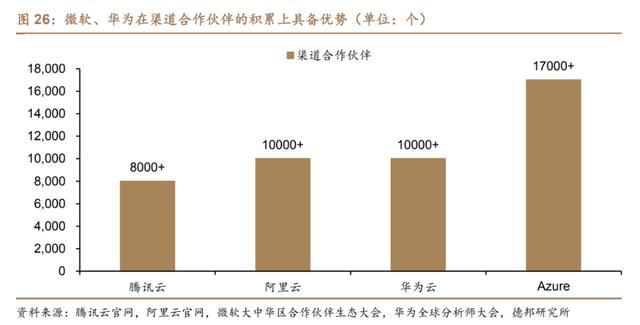 Azure和华为云由于主营业务运营时间长,积累的客户资源丰富,在企业用户资源方面具有优势,尤其是大客户,这正是阿里云、腾讯云等云厂商所需求的。