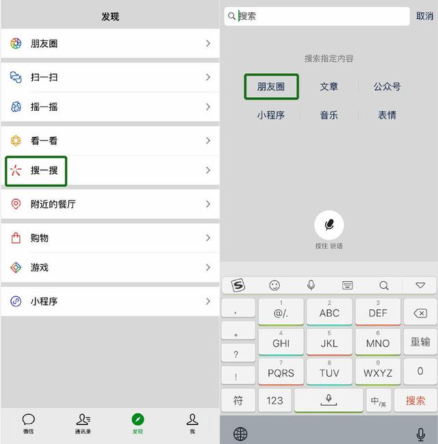 或者在“发现”页面点击“搜索”,也可以作为搜索之前朋友圈的入口。步骤同上。有了这个技能,你可以找到很久以前的朋友圈,记录下所有的那些年,那些年,那些属于你的感受和美好,让你随时重温。
