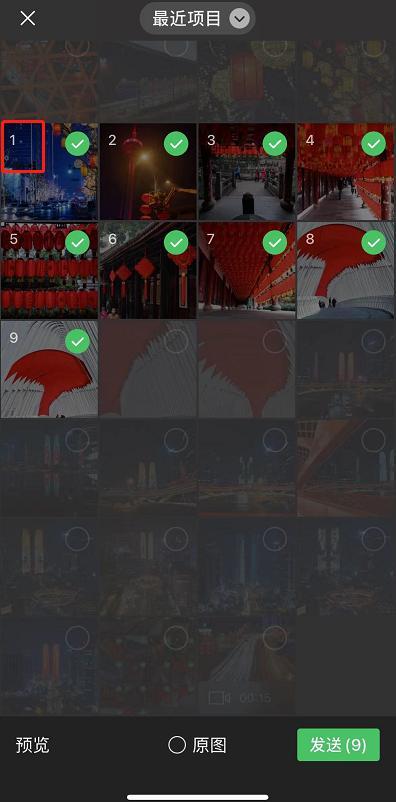 另外,现在发送图片时,微信中会显示选中图片的数量和发送顺序: