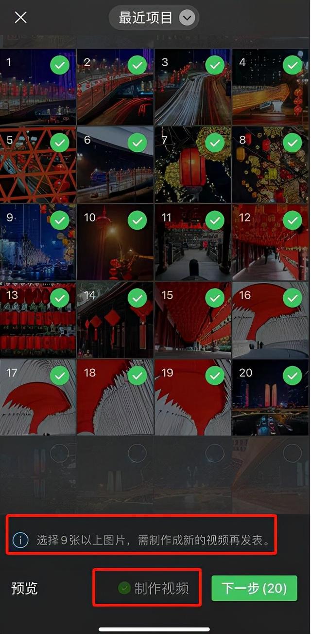 需要注意的是,只有朋友圈发的9张图片才会触发合成视频。单人聊天和群聊中发送的图片数量仍将限制在9: