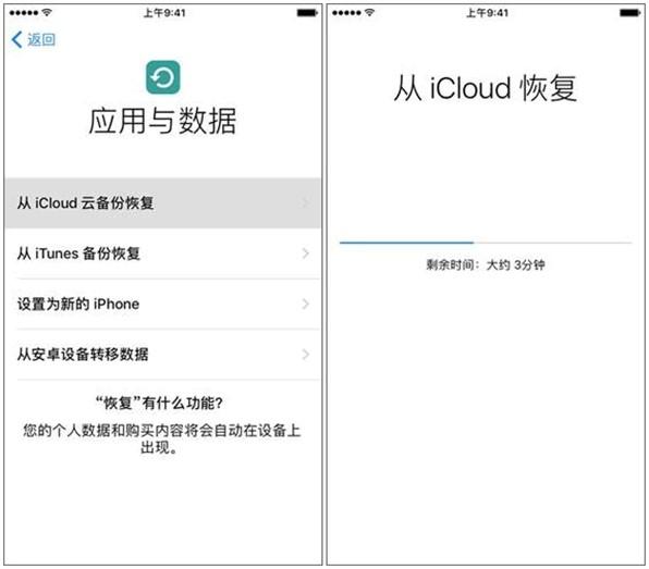 恢复iCloud备份有两个步骤。第一步是清除手机上的所有数据。第二步,重新激活iPhone,选择【从iCloud备份恢复】模式。