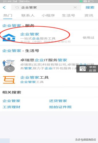 1.登录法人支付宝首页,搜索企业管家,点击注册。