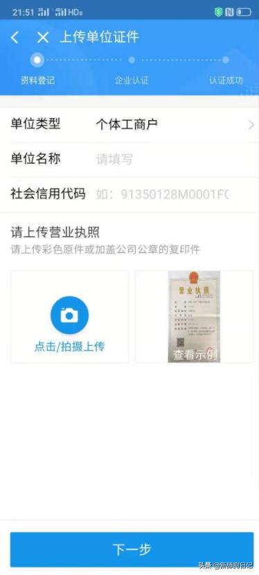 2.选择个体工商户,填写企业相关信息,点击上传。