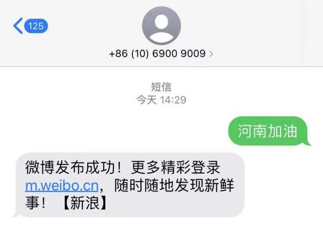 周也考了一次。关闭无线网络和蜂窝网络后,发送短信至1069009009,会收到微博已成功发布的回复。