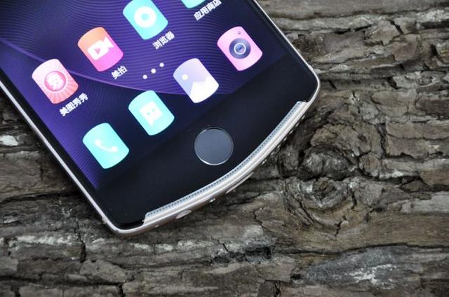 前低端采用按压式镜面前置指纹识别器,与近段时间iPhone的产品设计手法相同。但由于美图T8的系统基于Android,指纹识别器两侧有两个触控实体按键,具有Home键的功能。