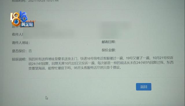 10月25日,小吴向邮政管理局投诉。他表示,很快童渊奥特莱斯的客服会联系他核实情况。