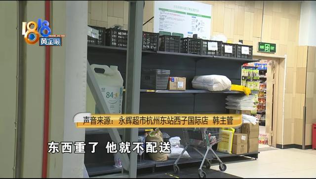 永辉超市杭州东站国际店韩主管:“没有发货,因为饿了么平台是这样的。东西重他就不送了,直接在那边就完事了(那有多重?)只要是大块的,或者矿泉水,提到这么多,基本都是拒绝,不接受。”