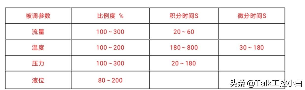 这只是热工参数PID经验法的一个试用参数,实际情况可能不在这个范围内,以实际情况为准。PID参数整定是在已有经验的基础上反复修正,可以满足要求。所以别人的PID参数不适合你,这是技术原因和其他因素造成的。所以别人的PID参数只能作为设定过程的经验,最终的结果还是由自己的工艺条件决定的。