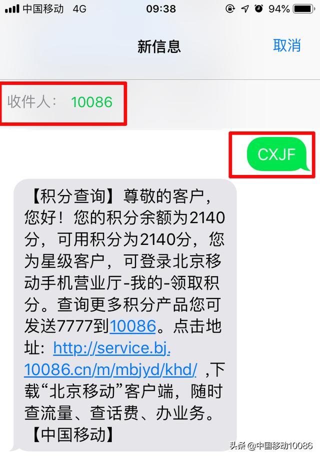 如何短信查积分(为了更好的演示,我们以北京的用户为例)