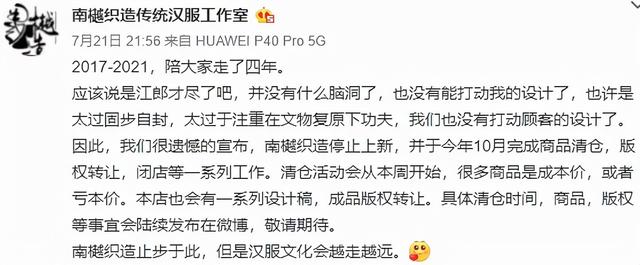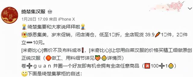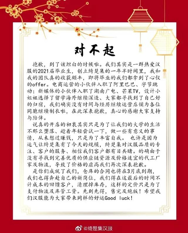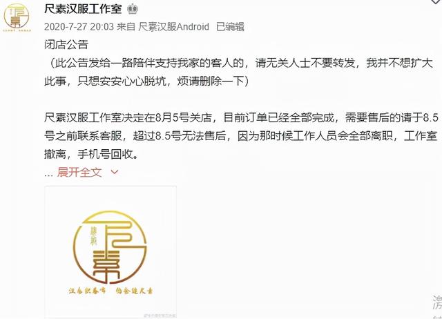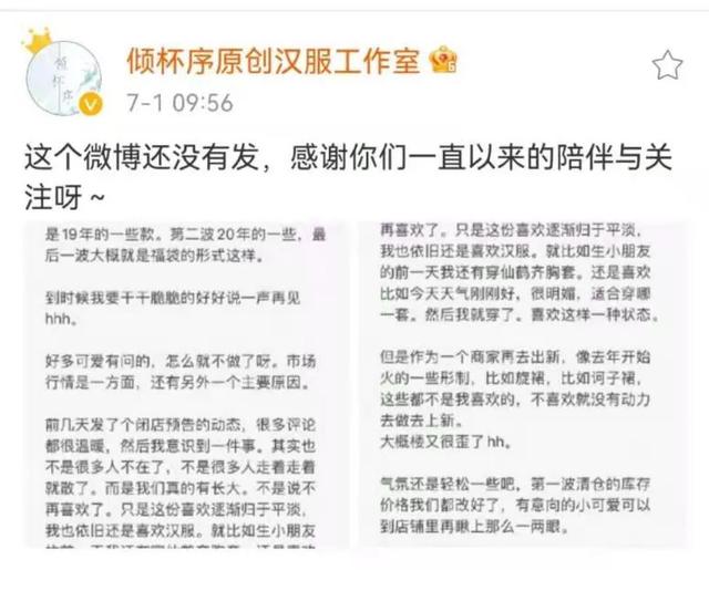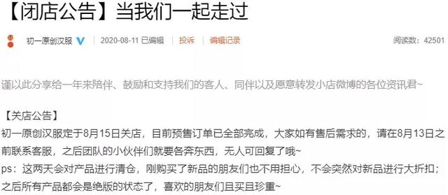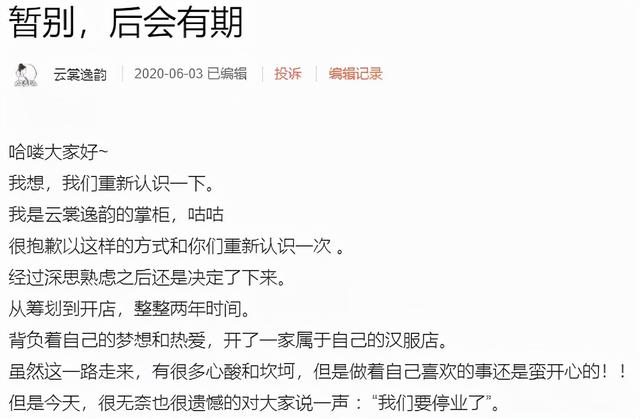 任何行业都是辛苦的,汉服店的生存尤其辛苦。很多袍泽可能并不精通商业和电商行业,但因为热爱汉服,所以选择成为汉服掌柜为爱发电。另外,还有很多倒闭的汉服商家,只是其中一例。这其中,有没有你说不清的宝藏店?不穿衣服,不跟你儿子同袍,尊重你的爱。看到“再见,回头见”等字样。,我们只能为他们惋惜,再次说,祝你好,回见。