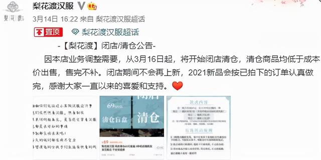 8年老店杜丽华今年3月宣布关店清场。好在经过调整,梨花又重新开放了。也期待实惠汉服商家能做得更好,走得更远!