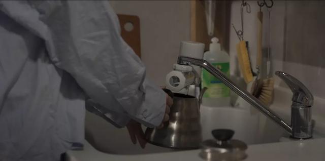 5点45分,洗完之后,她会去火炉边烧一壶热水。