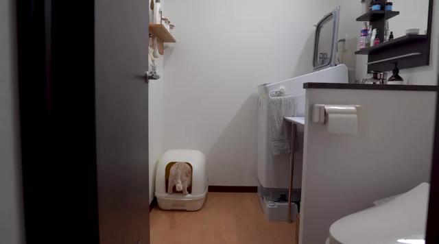 受面积限制,厕所不能分成四个部分,只把洗浴区搬出来了,把如厕、洗漱、洗衣的功能合在一个空房间里。